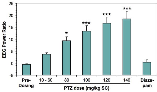 Pro- or anti-convulsant activity can be evaluated using EEG power analysis and can be more sensitive than models utilizing chemical or electrical stimulation and behavioral outcome measures.